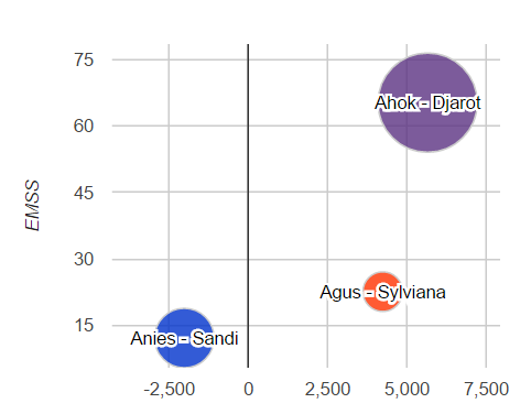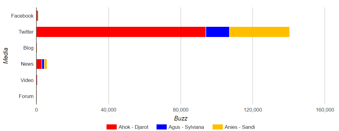 Hasilnya menunjukkan bahwa untuk saat ini pasangan Ahok-Djarot adalah pasangan yang paling sering dibicarakan di sosial media