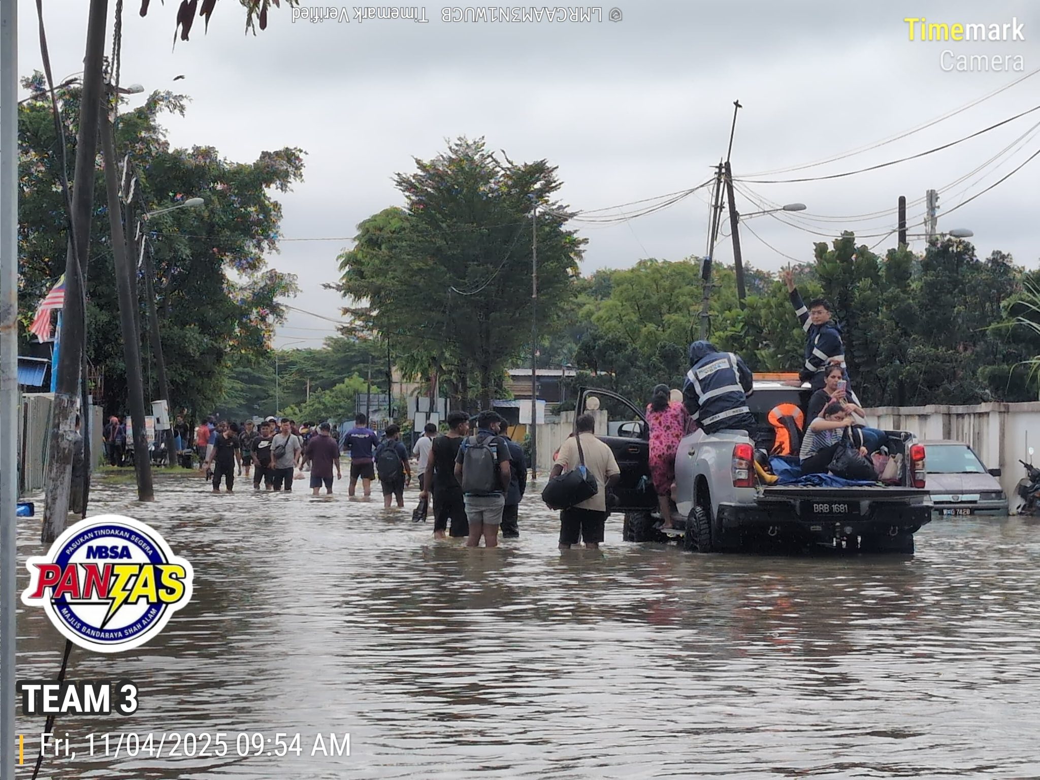 A view of flooded roads in Taman Sri Muda following heavy rain on 11 April.