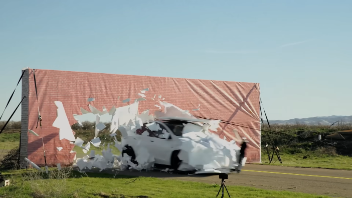 In his final test, Rober used a large foam wall designed to blend into the background, mimicking a classic movie set trick