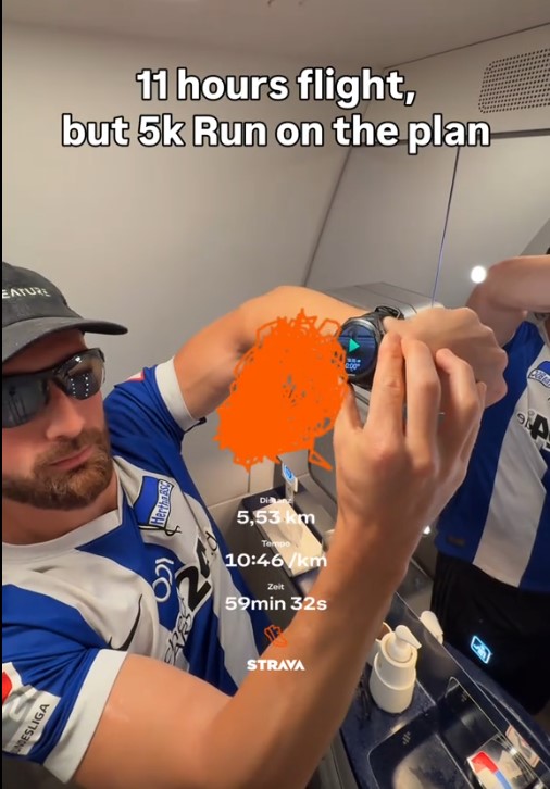 Posted on TikTok, the video highlights the extreme lengths some people will go to maintain a rigorous training schedule, even while cruising at 30,000ft.