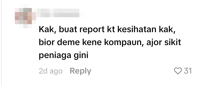 Other netizens implored her to lodge a health report and request a refund from the stall.