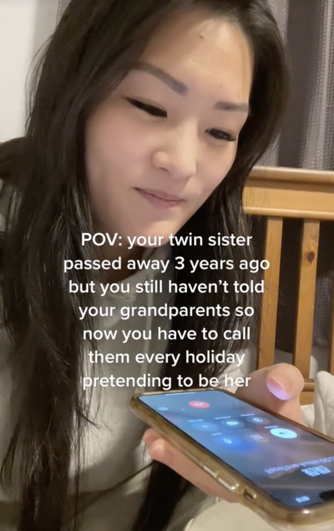 In a recent TikTok video, Niu shared that she had kept the death of her identical twin sister a secret from their elderly grandparents in China for five years.