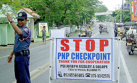 Real checkpoints are usually in an area that can be easily seen. Officers should wear a police uniform.