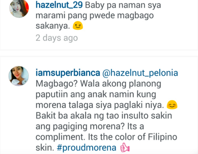 Gonzalez responded by saying that she has no plans of changing her daughter's natural skin color, and that there's no problem with being morena! "It's the color of Filipino skin," she said. (GO GIRL!)