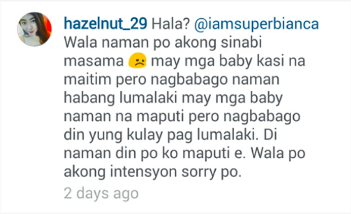 Bianca tried to keep her composure from the said comments — that seems too off for her young one.