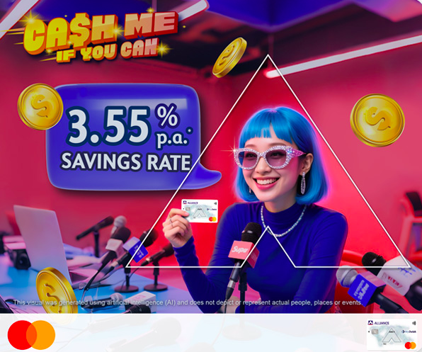 Cash Me If You Can, Alliance Basic Savings Account/-i dilancarkan untuk mereka yang mahukan simpanan yang lebih dinamik, bukan sekadar simpan dan tunggu, tetapi menyimpan wang dengan pendekatan yang lebih relevan dengan gaya hidup semasa. Akaun boleh dibuka sehingga 31 Mei 2026, dan anda masih berpeluang menikmati kadar simpanan sebanyak 3.55% setahun* sehingga Disember 2026, tertakluk kepada terma dan syarat.