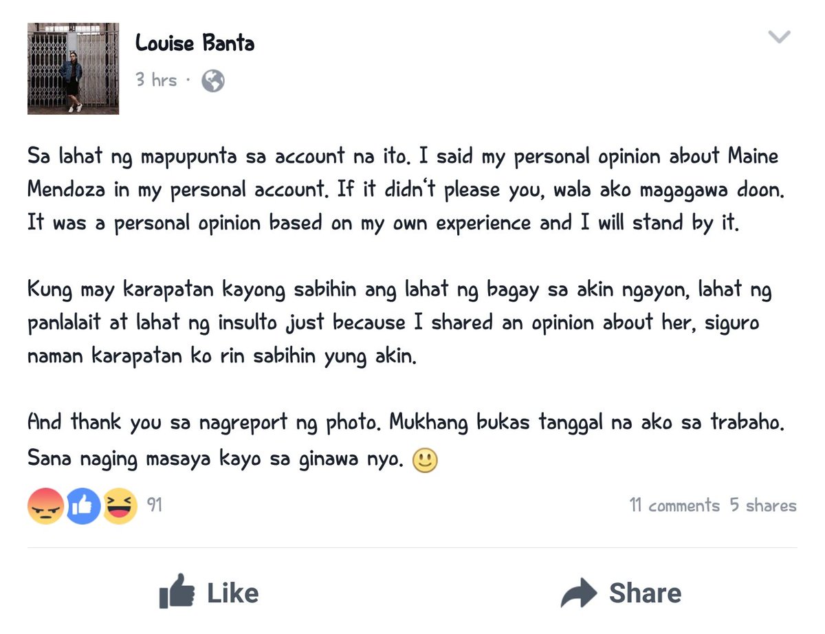 Preview Magazine [posted] (https://www.facebook.com/preview.ph/posts/10154544871081501) a statement on their Facebook page to defend Mendoza from Banta's accusation
