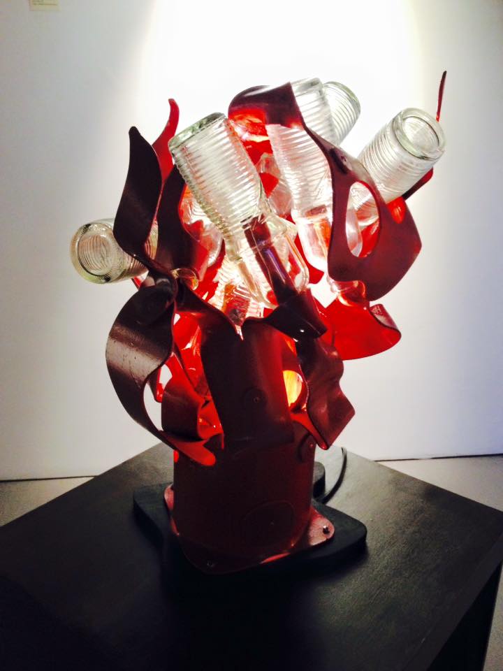 In this exhibit, Santos has proven that PVC pipes are not only for plumbing but for arts too! Santos had used PVC pipes, bottles, and glass bowls to create wonderful lamps that you want to bring and display in your own home.