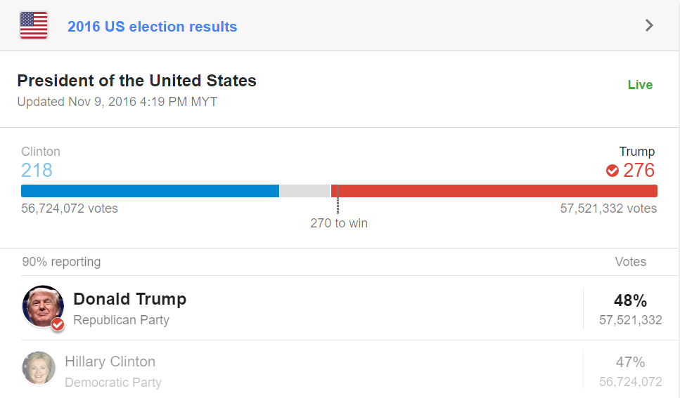 Cover image via SAYS IndonesiaDonald Trump terpilih menjadi Presiden Amerika Serikat mengalahkan Hillary Clinton