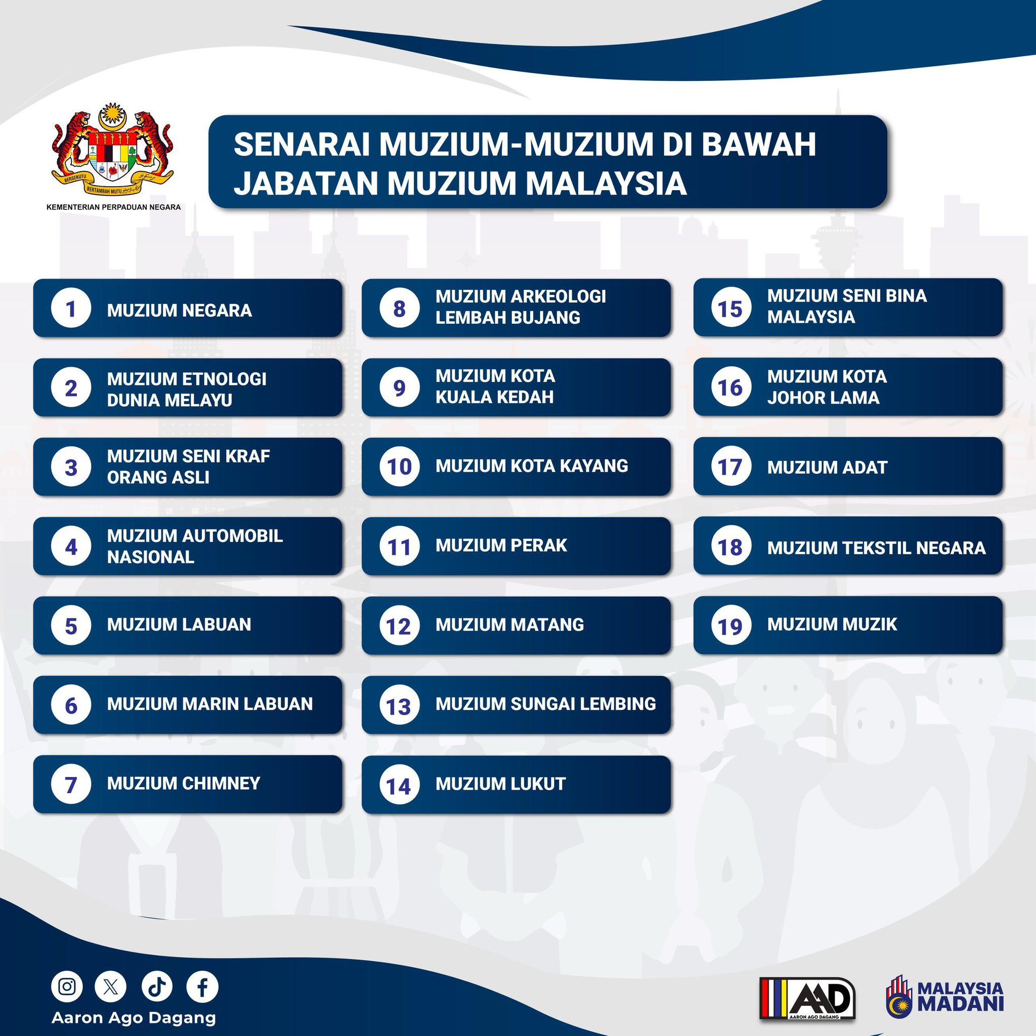 "Pada 18 Mei 2025, semua muzium di bawah JMM akan dibuka secara percuma kepada orang ramai sempena sambutan Hari Muzium Antarabangsa yang bertemakan 'Masa Depan Muzium Dalam Komuniti Yang Berubah Pantas'.