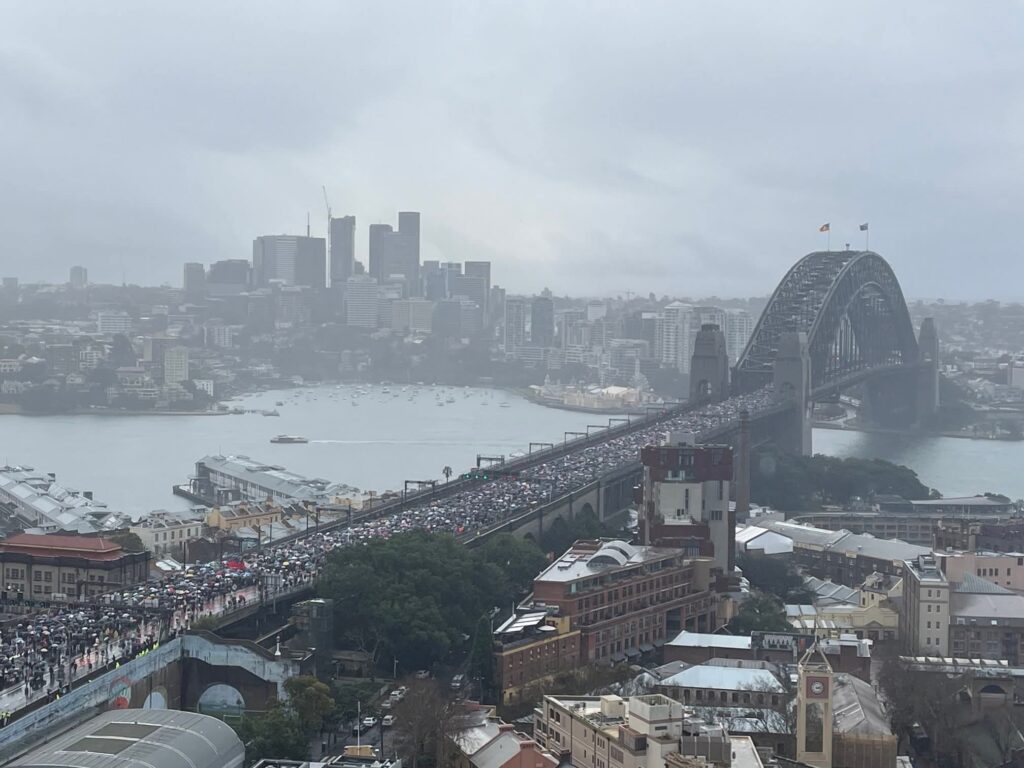 Sekitar 300,000 penunjuk perasaan membanjiri Jambatan Sydney Harbour semalam bagi menyatakan solidariti terhadap rakyat Gaza yang kini berdepan krisis kemanusiaan semakin meruncing