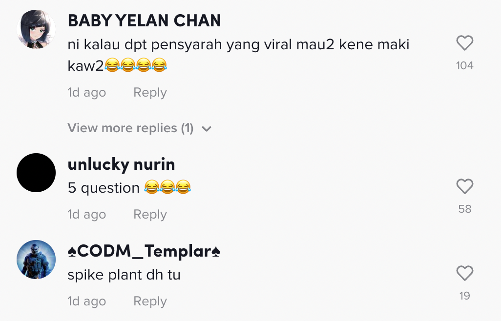 Berikut di bawah adalah antara komen daripada netizen di TikTok: