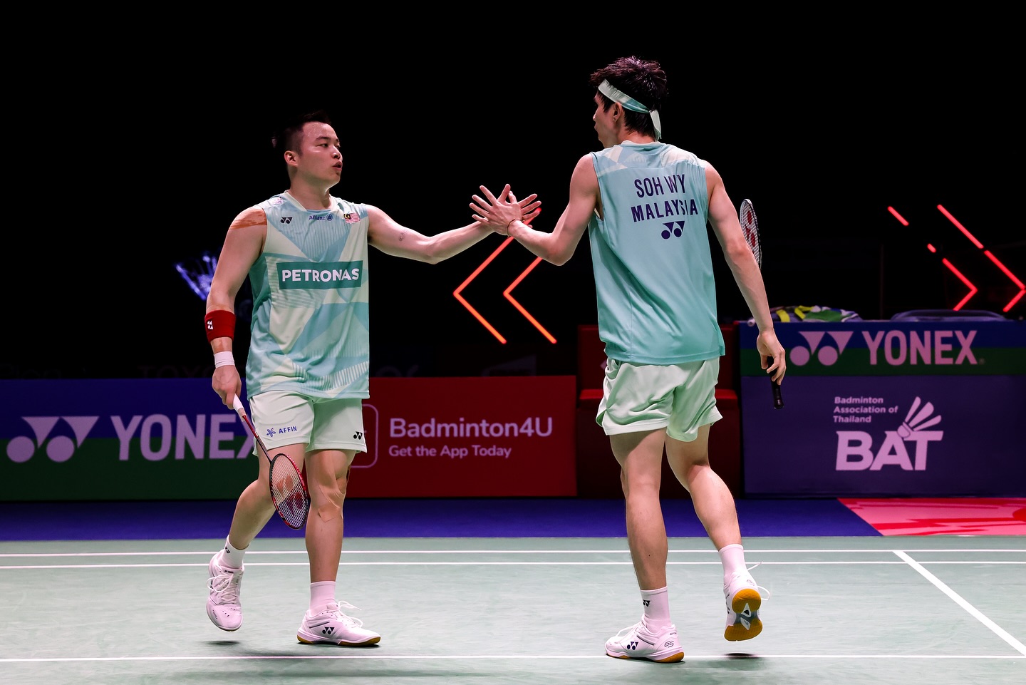 Aaron Chia dan Soh Wooi Yik memperoleh gelaran juara beregu lelaki selepas menghadapi tiga set yang mendebarkan menentang pemain Denmark, William Kryger Boe dan Christian Faust Kjaer di Bangkok pada Ahad, 18 Mei.