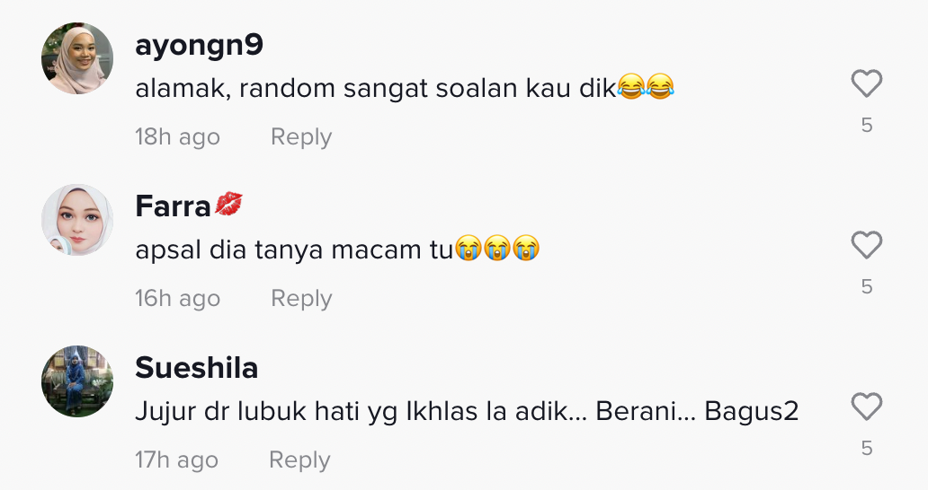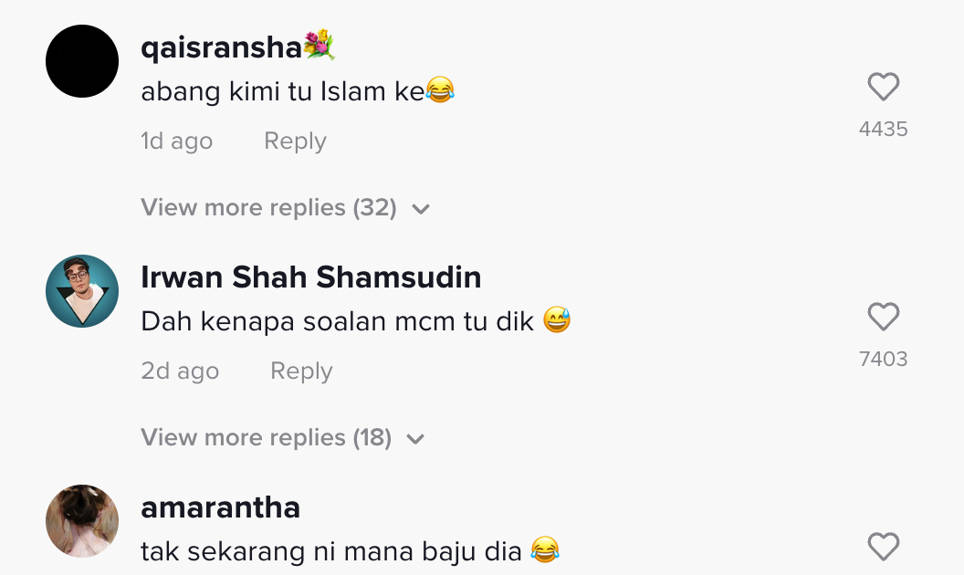 Berikut di bawah adalah antara komen daripada netizen di TikTok: