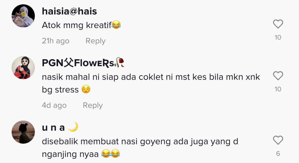 Berikut di bawah adalah antara komen daripada netizen di TikTok:
