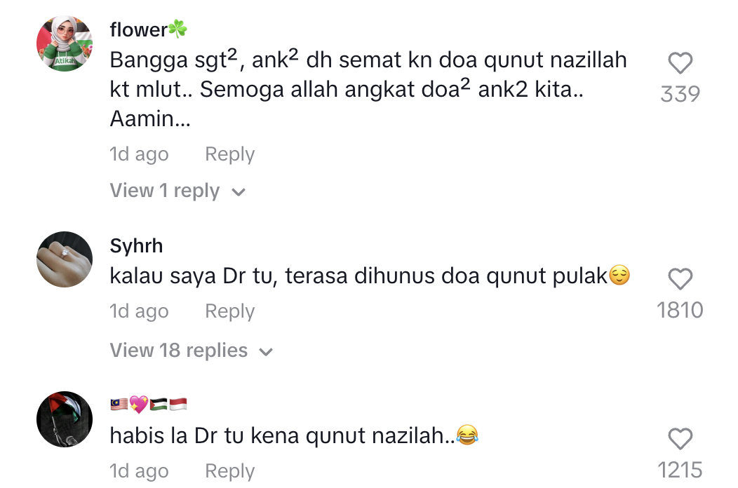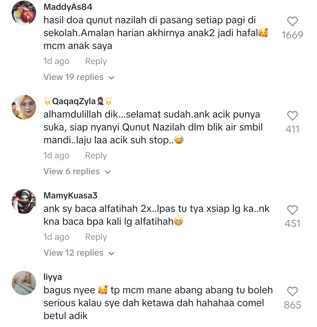 "Sekarang selalu dengar budak-budak kecil nyanyikan Qunut Nazilah. Alhamdulillah" – Netizen