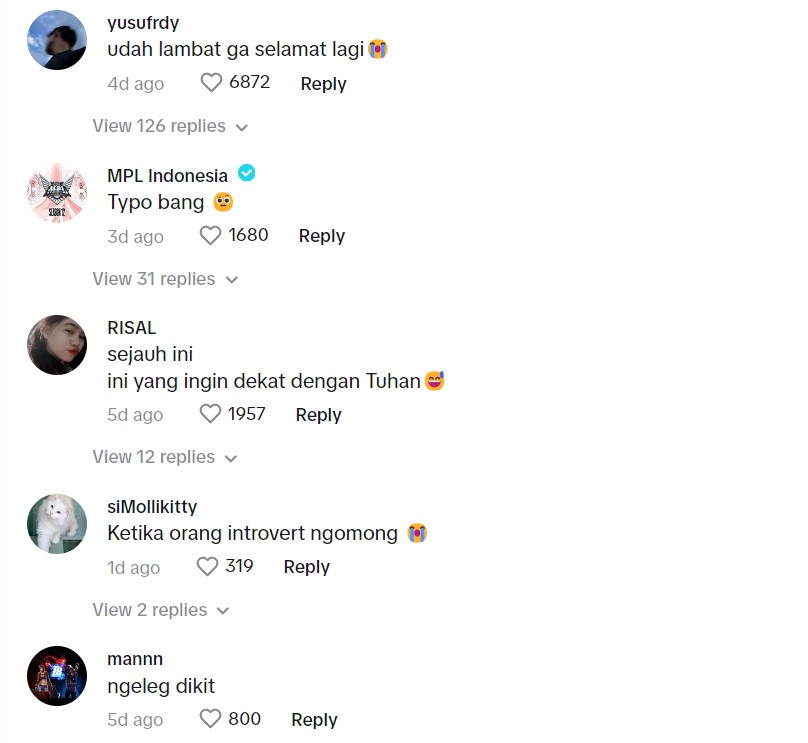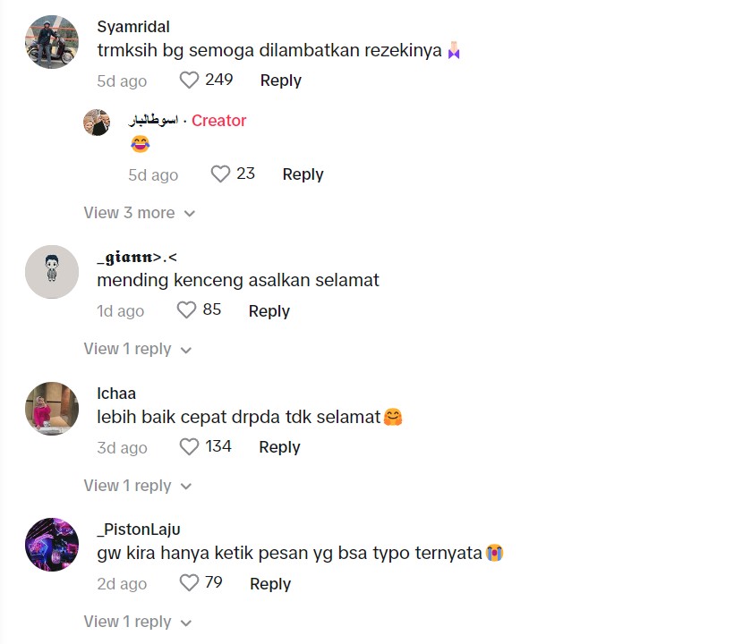 Rata-rata komen yang diberikan netizen di TikTok menunjukkan reaksi terhibur terhadap kata-kata lelaki itu.