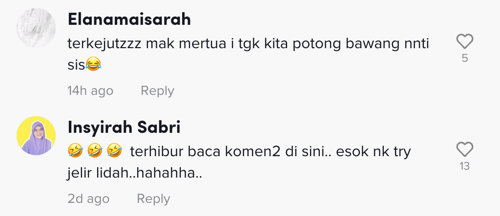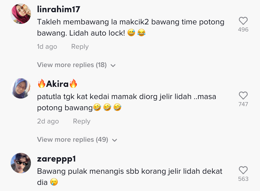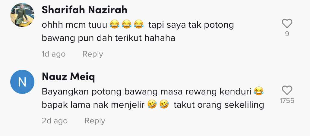 "Oh macam tu, tapi saya tak potong bawang pun dah terikut hahaha" – Netizen