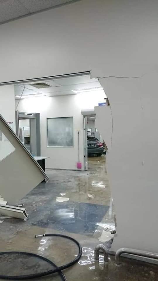 Dia kemudian kembali kembali memandu dan merempuh bilik Production Labelling Department sehingga menyebabkan kebakaran namun api berjaya dipadamkan pengawal keselamatan bertugas.