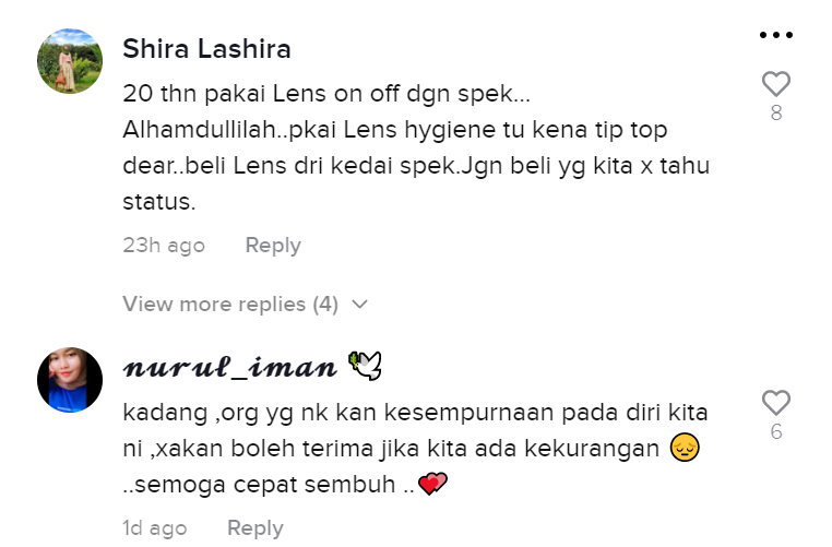Menerusi video yang tular di aplikasi TikTok, gadis berkenaan telah menunjukkan matanya mengalami radang yang teruk kerana bekas teman lelakinya itu suka melihat dirinya memakai kanta lekap semasa keluar bersama.