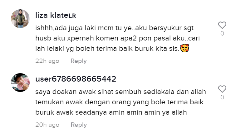 "Bila aku mekap, aku cantik baru nampak kesungguhan kau sayang aku," tulisnya.
