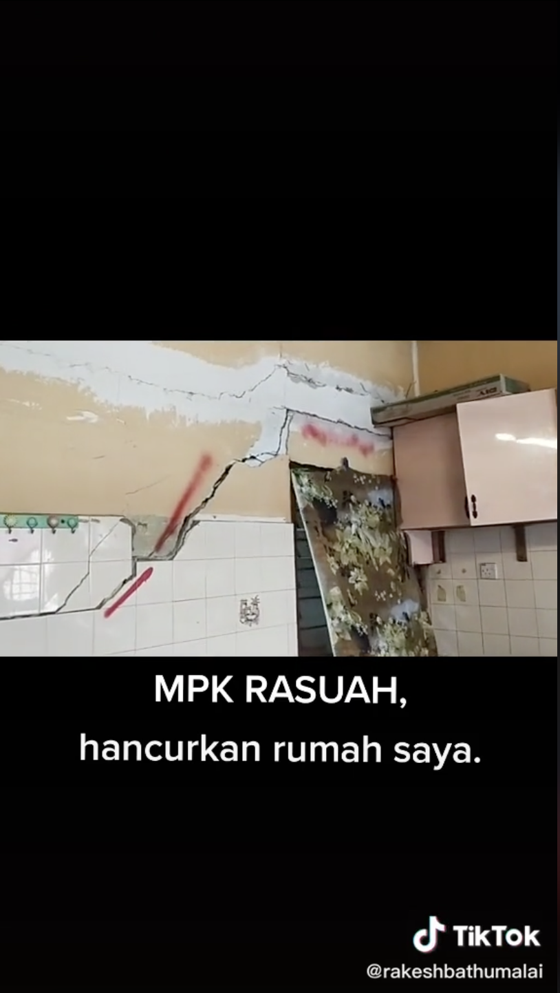 Dia kemudiannya menunjukkan pula situasi rumahnya yang hampir musnah dipenuhi retakan dan dilihat tidak begitu selamat untuk diduduki.