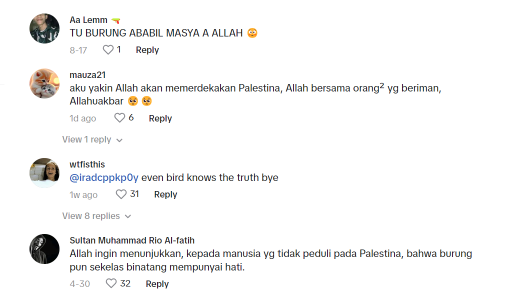 Perlakuan burung gagak itu berjaya dirakam ketika haiwan berkenaan singgah di tiang bendera tersebut. Rata-rata warganet berpendapat burung gagak itu menunjukkan tanda 'solidariti' kepada Palestin yang ditindas oleh Israel ketika ini.