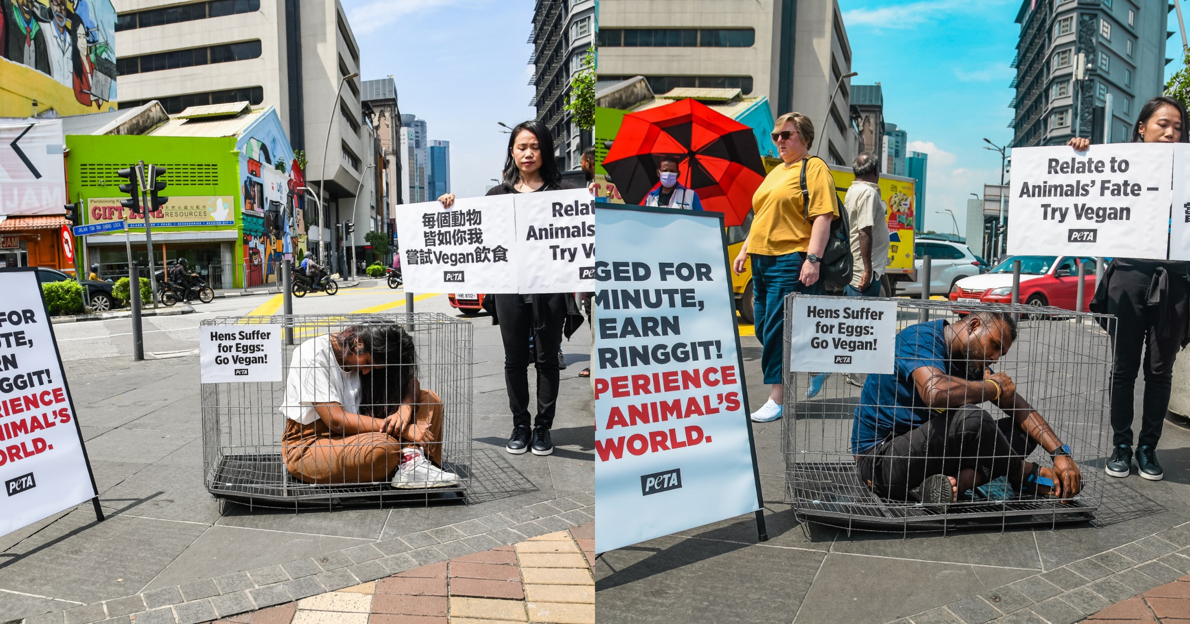 Aktivis PETA Tawar RM10 Buat Orang Awam Yang Duduk Dalam Sangkar Haiwan Selama 1 Minit