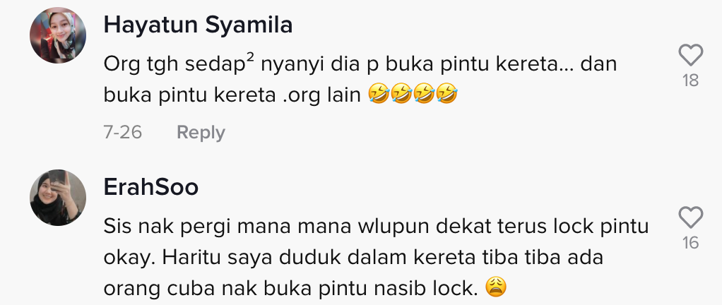 Sama seperti video di TikTok ini apabila seorang wanita terpaksa menahan malu semasa sedang syok menyanyi di dalam keretanya telah mencuri tumpuan ramai.
