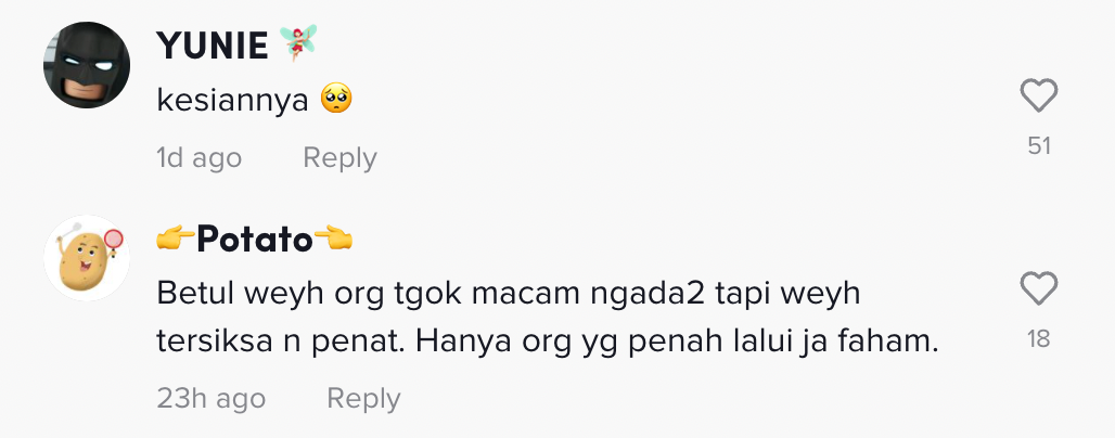 Berikut di bawah adalah antara komen daripada netizen di TikTok: