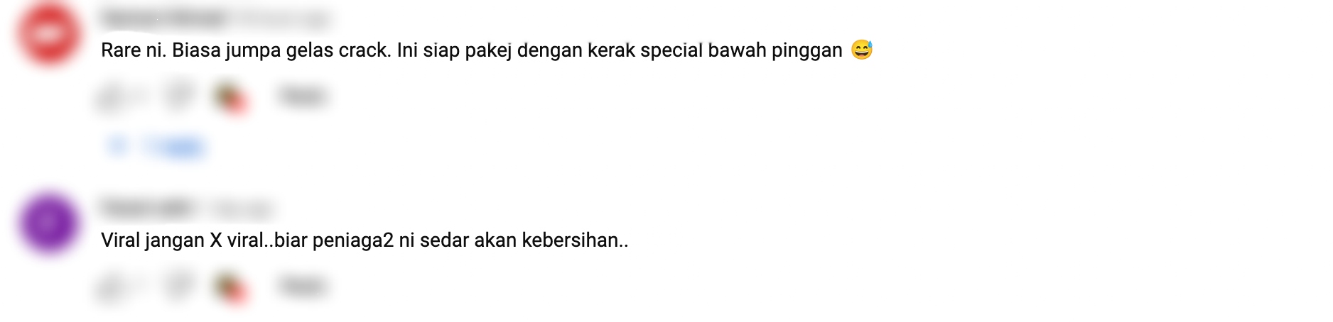 "Ada member share kat whatsapp video YouTube seorang reviewer makanan review pinggan yang digunakan kat kedai dia pergi. Geli weh, berdaki pinggan"