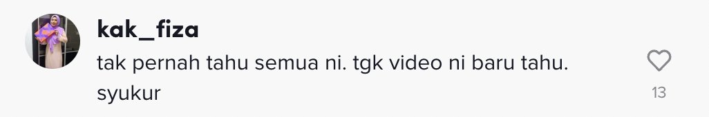 "Tak pernah tahu semua ni. Tengok video ni baru tahu. Syukur" – Netizen