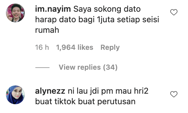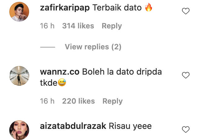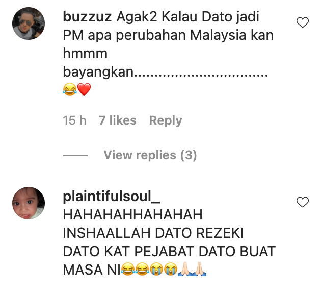 Berikut di bawah adalah antara komen daripada netizen di Instagram: