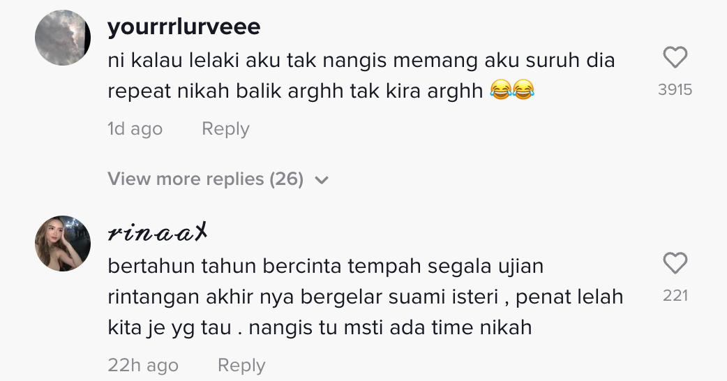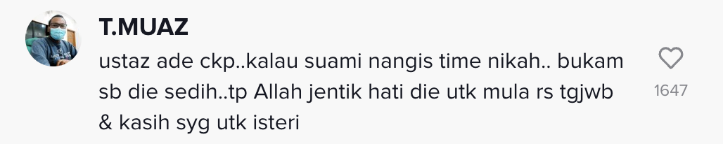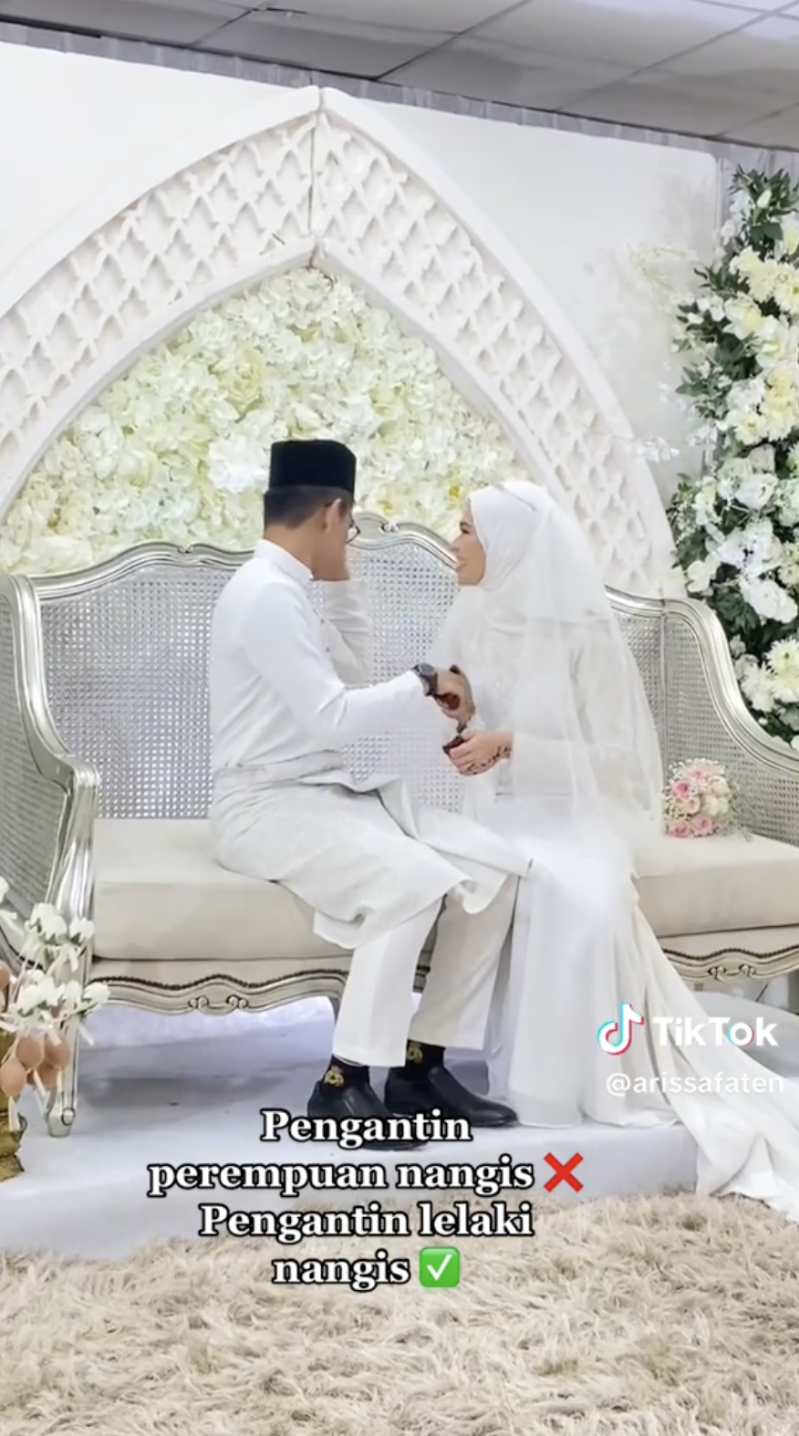 Tular sebuah video di TikTok ini apabila pengantin lelaki sebak selepas saja si isteri mencium tangannya telah mencuri tumpuan ramai.