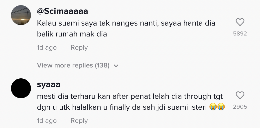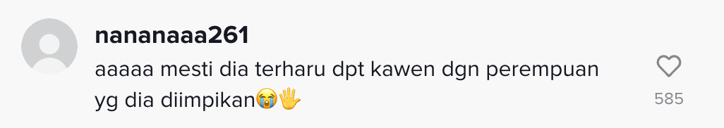 "Mesti dia terharu dapat kahwin dengan perempuan yang dia diimpikan" – Netizen