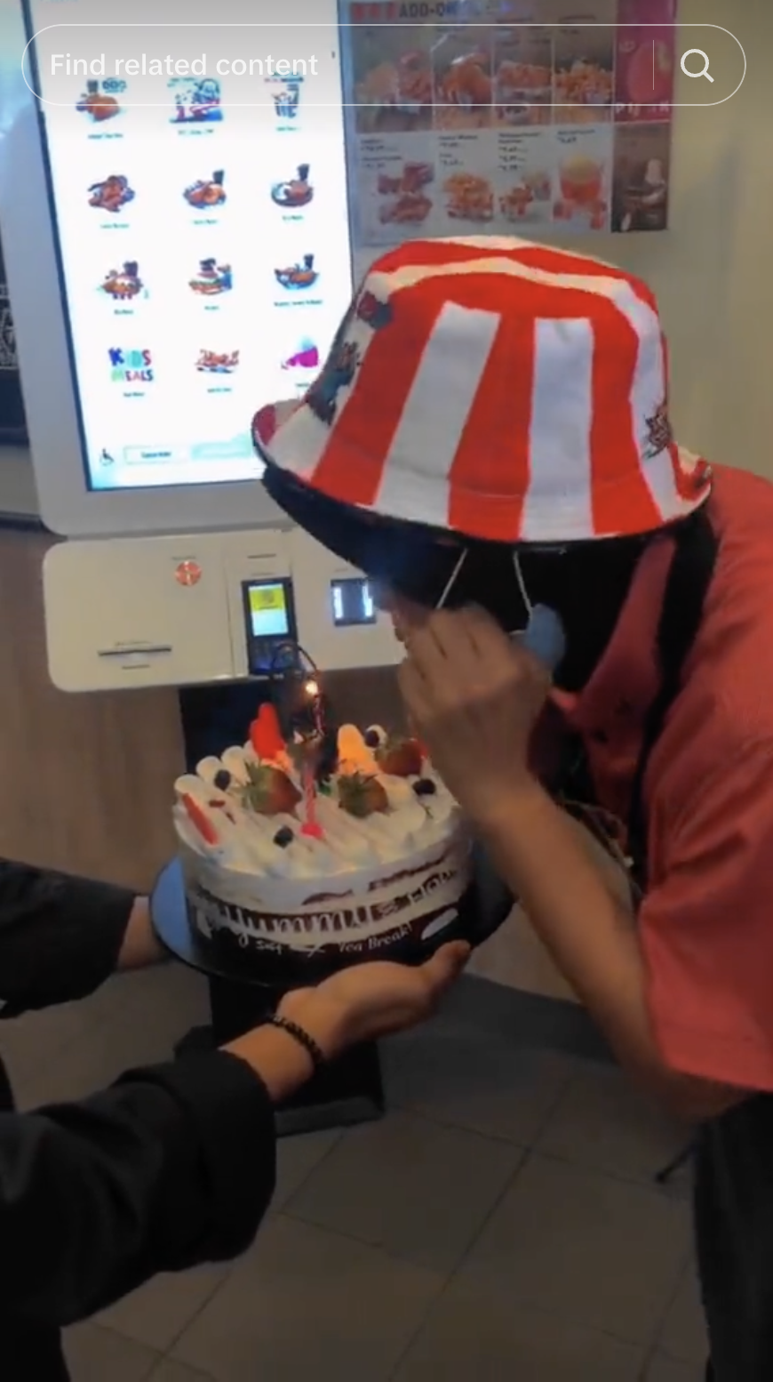 Dapat dilihat dia membawa kek sambil ditemani rakan-rakannya ketika ibunya sedang bekerja. Situasi itu membuatkan ibunya terkejut dan terharu di atas sambutan berkenaan.
