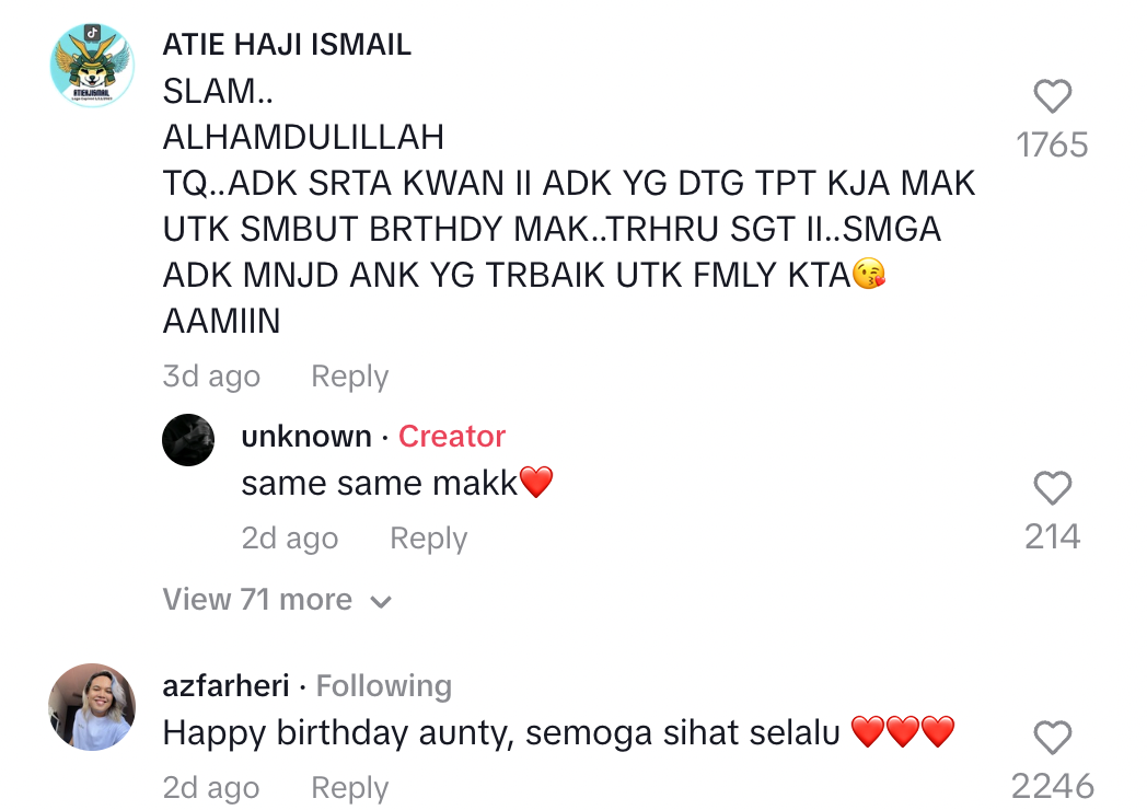 Berikut di bawah adalah antara komen daripada netizen di TikTok: