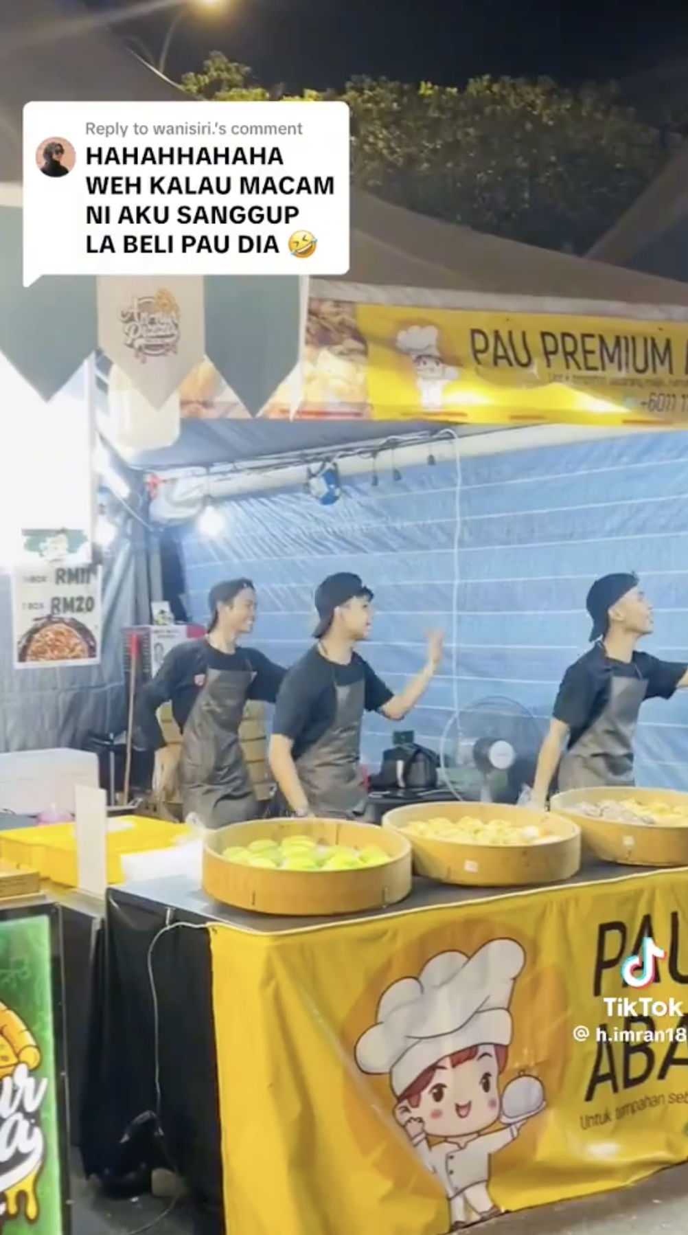Menerusi video tersebut, kelihatan tiga orang anak muda berkenaan menjual pau di sebuah festival makanan.