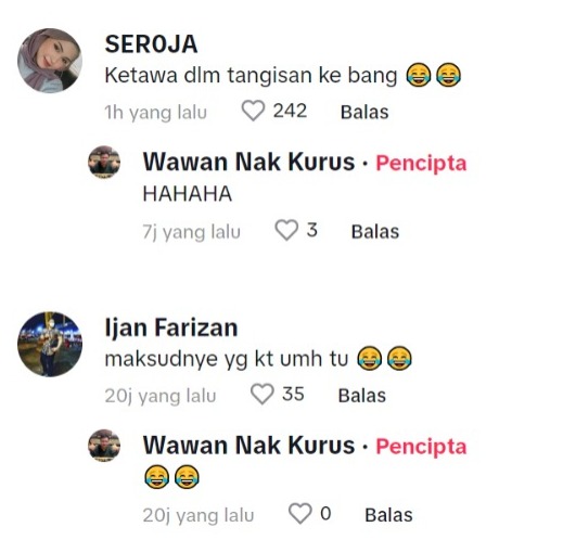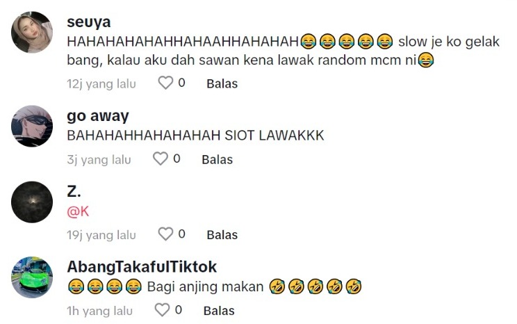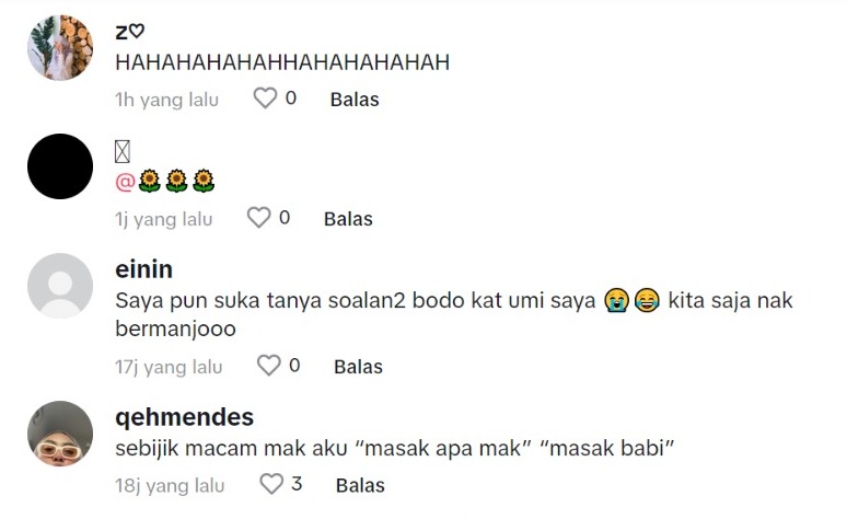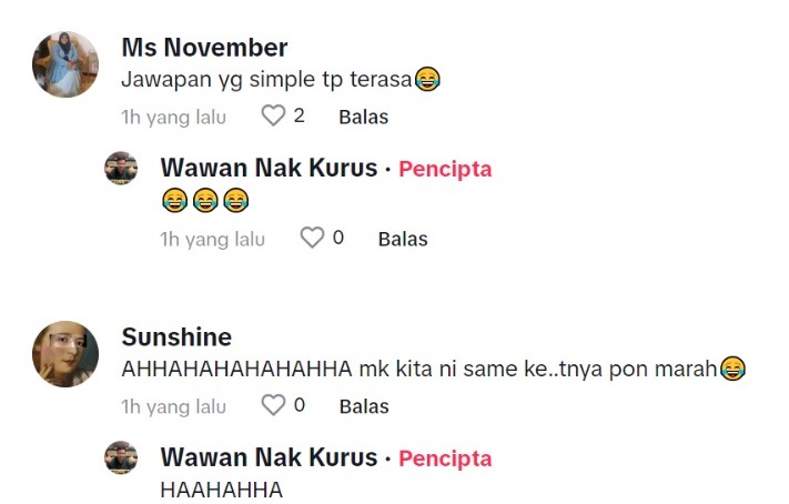 Dalam pada itu, tinjauan di ruangan komen mendapati rata-rata netizen turut terhibur melihat jawapan spontan wanita tersebut dan memberi komen mencuit hati mengenainya.