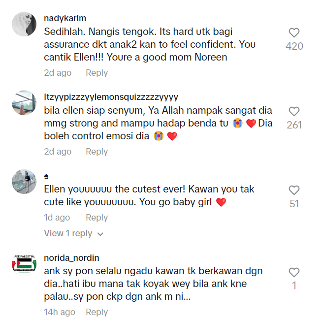 "Dia baru berumur 8 tahun dan Alhamdulillah, dia berjaya untuk lawan para bakal pembuli ini di sekolahnya yanng memanggil dia sebegitu sebab saya selalu ingatkan dia yang kita sebenarnya cantik dengan cara kita tersendiri.
