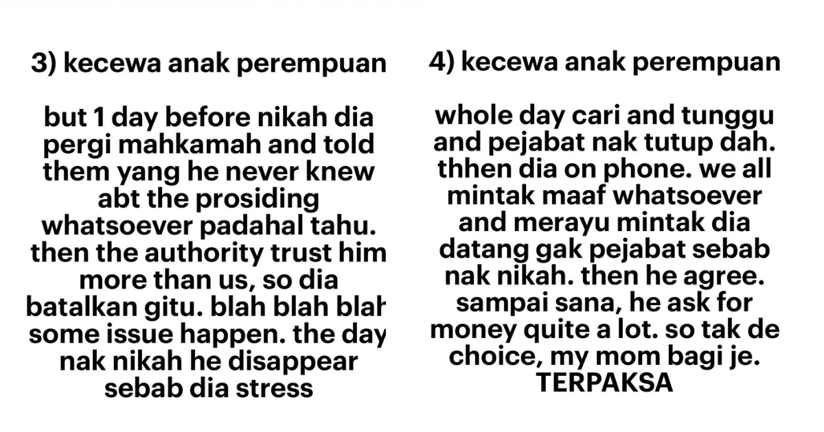 "Sampai sana he ask for money quite a lot. So, tak ada choice my mom bagi je. Terpaksa," tulisnya.