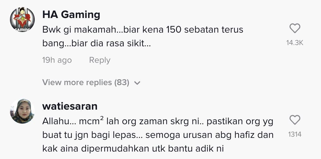 "Allahu, macam-macam lah orang zaman sekarang ni. Pastikan orang yang buat tu jangan bagi lepas" – Netizen