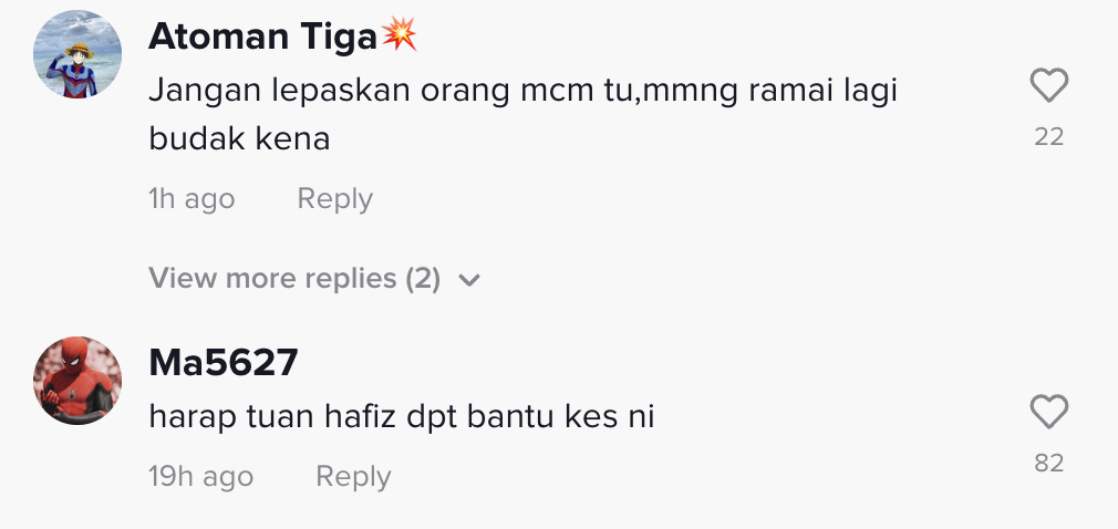 Berikut di bawah adalah antara komen daripada netizen di TikTok: