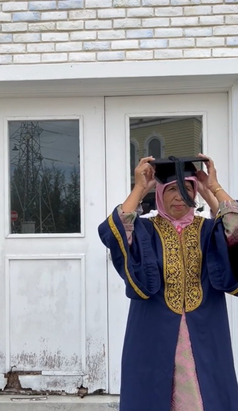 Anak Perempuan Pakaikan Jubah Konvokesyen Untuk Mak Ayah Ini Buat Netizen Turut Sebak