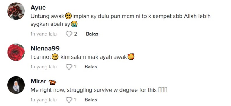 Dalam pada itu, tinjauan di ruangan komen mendapati rata-rata netizen turut terharu dan mendoakan kesejahteraan keluarga tersebut. Ada juga yang berkongsi kehidupan mereka dan relate dengan video berkenaan.