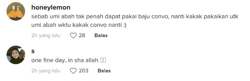 "Tahniah kak, dulu masa kita convo bapa kita menangis dalam dewan katanya, konvo juga anak kita ya mi huwa" – Netizen