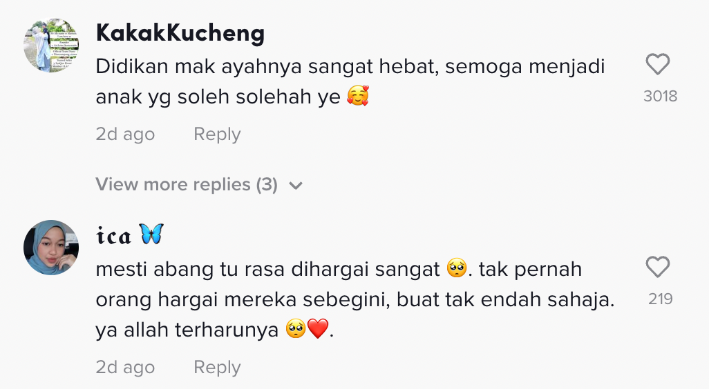 Dalam pada itu, tinjauan di ruangan komen mendapati rata-rata netizen turut memberikan respon yang positif terhadap video itu.