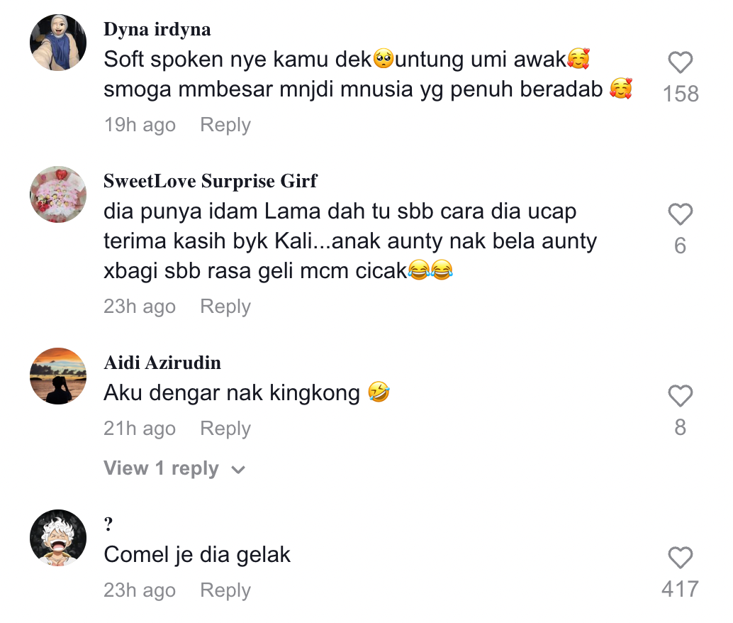 Berikut di bawah adalah antara komen daripada netizen di TikTok:
