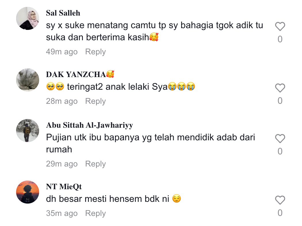 Apa yang lebih menarik perhatian adalah reaksi si anak yang kelihatan sangat gembira dan tidak henti mengucapkan terima kasih kepada ibunya.