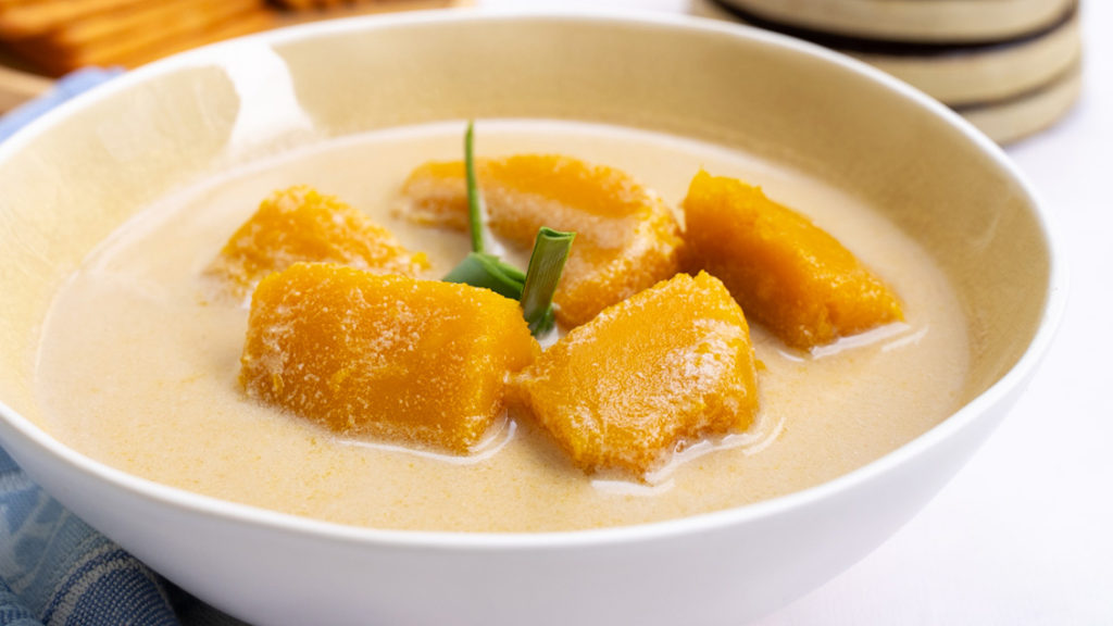 Resepi bubur labu ini seakan-akan pencuci mulut Thailand iaitu Bua Loy. Cara membuatnya mungkin mengambil masa sedikit, tetapi hasilnya akan buat anda puas hati.